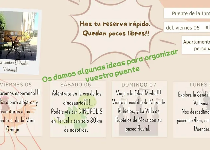 Apartamentos El Prado ferielejlighed ligger næsten 6 km fra Mora de Rubielos Slot. Lejlighed består af 7 værelser.